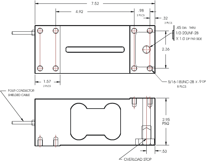 The Model 60410 single-point load cell requires a minimum of engineering design to incorporate it into a platform structure since it can be bolted directly to the weighing pan. Its resistance to off-center loading error allows the use of large weighing pans. It is an excellent choice for use in counting scales, bench scales and moderate capacity floor scales.